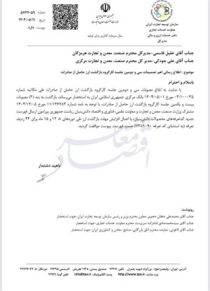 بخشنامه سازمان توسعه تجارت ابلاغ مصوبات بیست و پنجمین کارگروه برگشت ارز حاصل از صادرات دسترسی به کوتاژ های صادراتی مربوط به سالهای 98 تا 1400 و رفع تعهد ارز حاصل از صادرات تا پایان...
