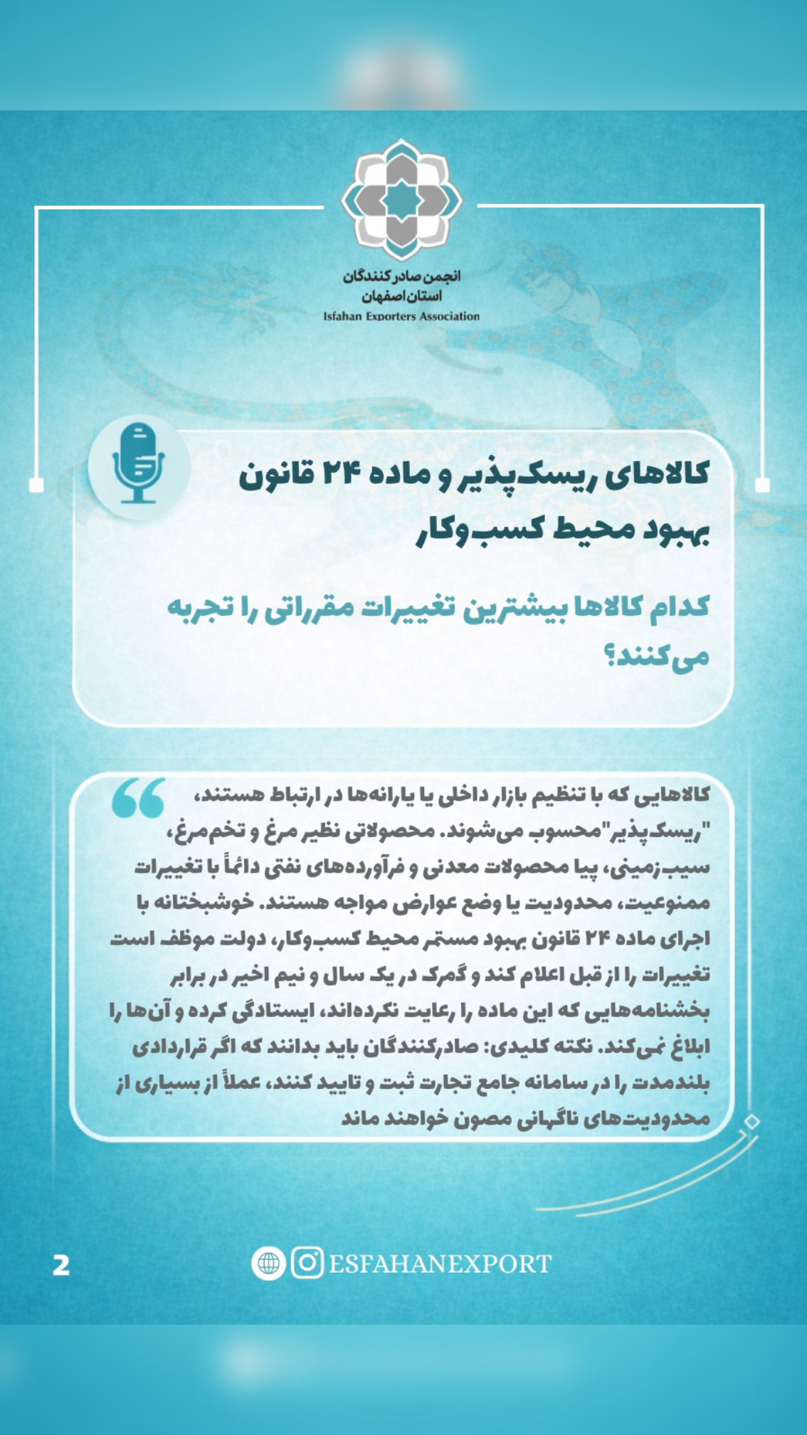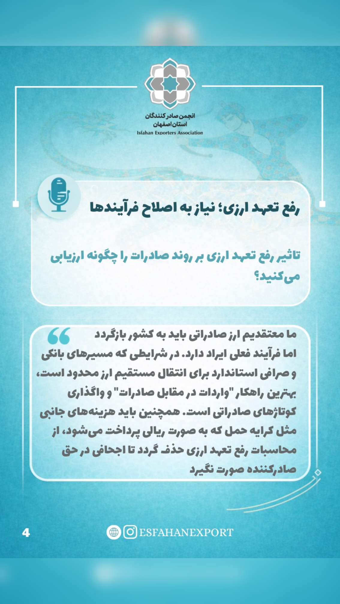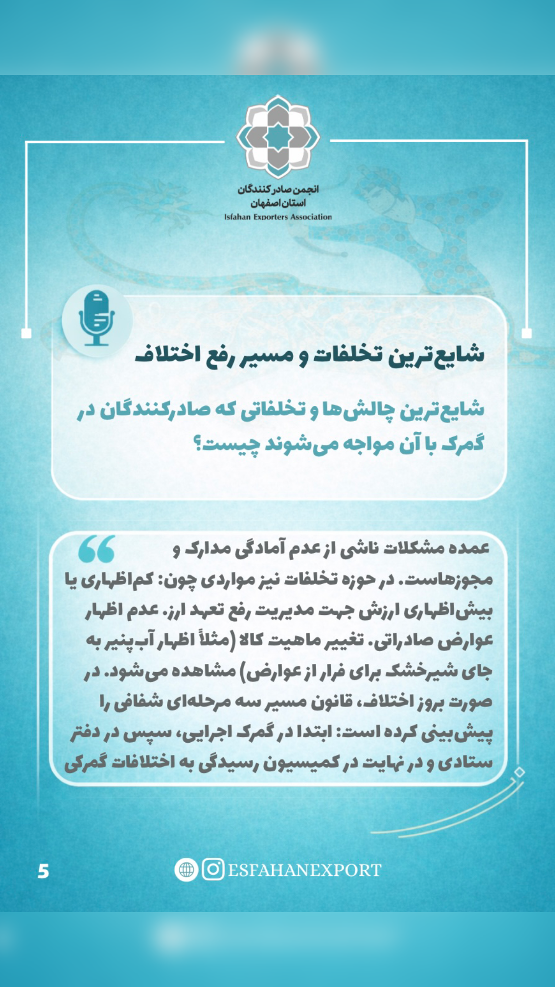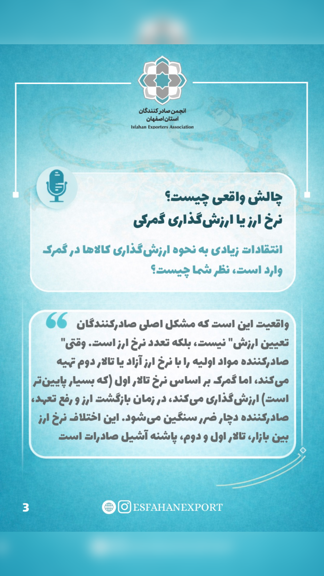 در نشست تخصصی مشترک میان مدیرکل گمرکات استان اصفهان و دبیر انجمن صادرکنندگان اصفهان، مهم‌ترین چالش‌های صادرات کشور از جمله تغییرات مقرراتی، رفع تعهد ارزی، ارزش‌گذاری گمرکی و نقش سازمان‌های مجوزدهنده مورد بررسی قرار گرفت.