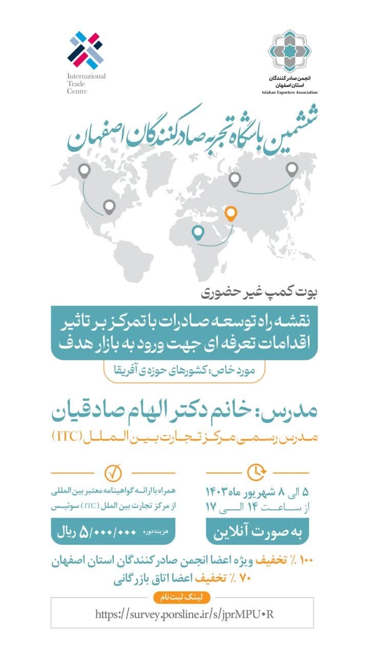 بوت کمپ غیرحضوری نقشه راه توسعه صادرات با تمرکز بر تاثیر اقدامات تعرفه ای و غیر تعرفه ای جهت ورود به بازار هدف ( کشورهای حوزه آفریقا)