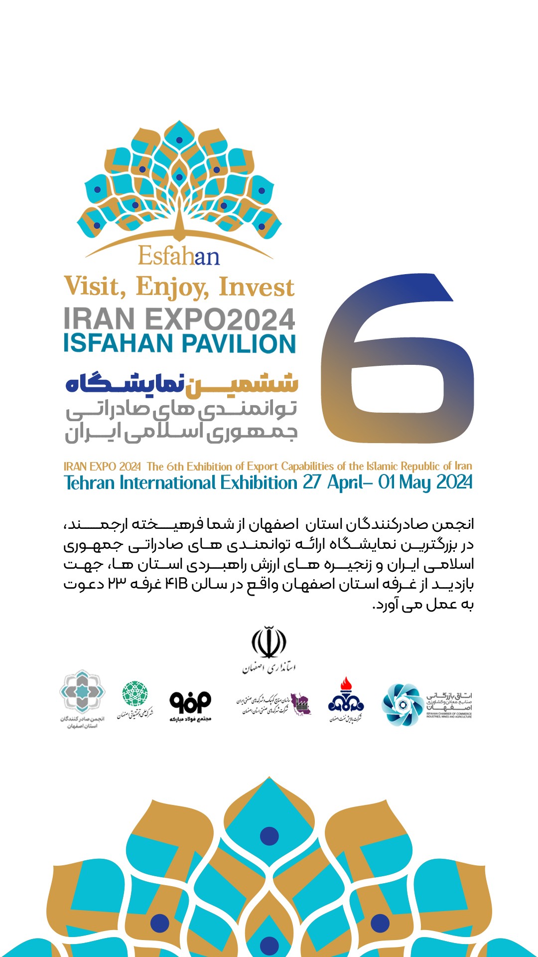 مکان: نمایشگاه بین المللی ایران، سالن B41 پاویون استان اصفهان